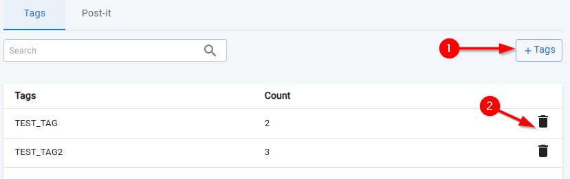 - Tags and Post-It provide a graphical interface for you to manage existing and add new Tags or Post-its, for example: