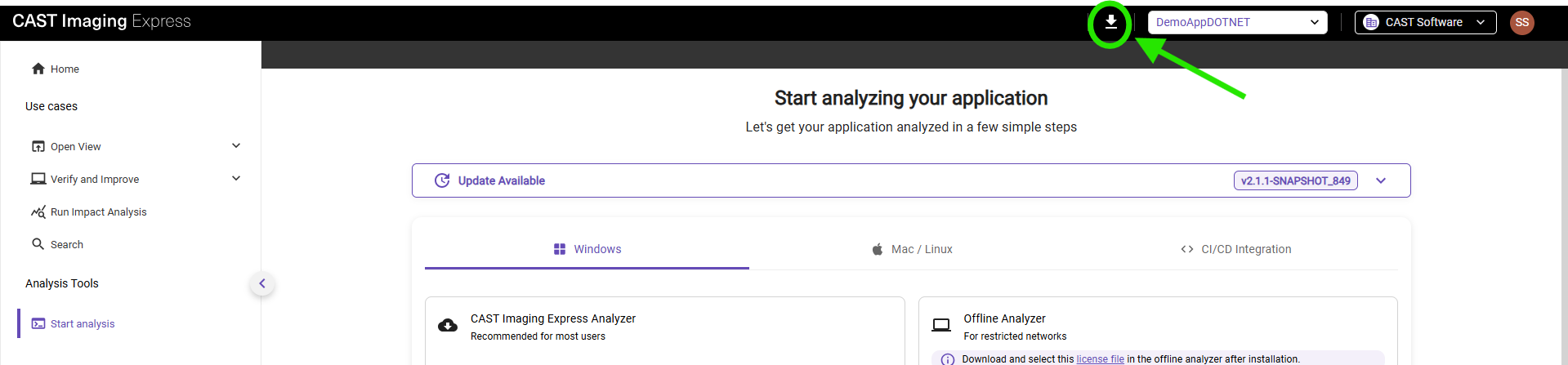 - Open any analyzed application in CAST Imaging Express.