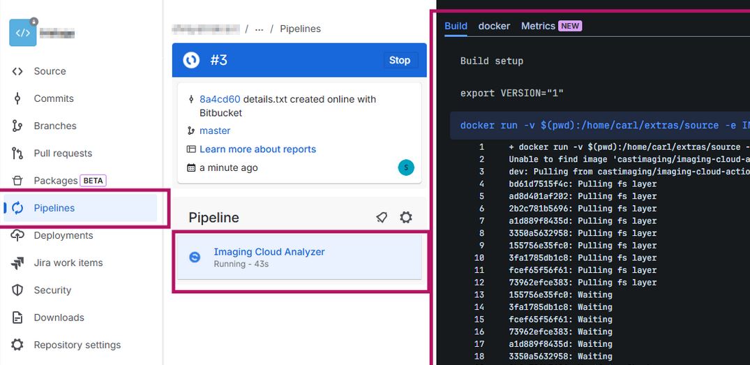 Using the Bitbucket Pipelines feature effectively replaces the CAST Imaging Analyzer tool that you would normally download to your local machine to perform the required actions.