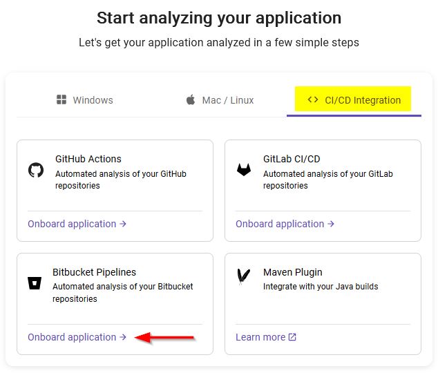 In your CAST Imaging Express account, click CI/CD Integration > Onboard application: