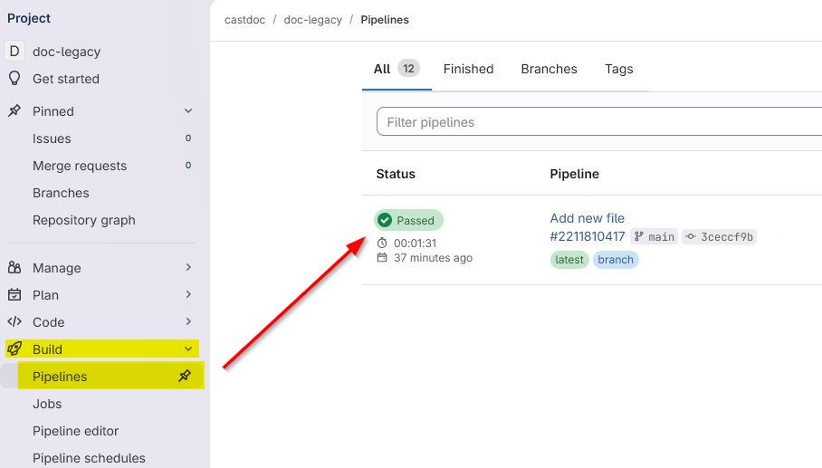Committing this file will automatically trigger a Gitlab build which you can see in the Pipeline: