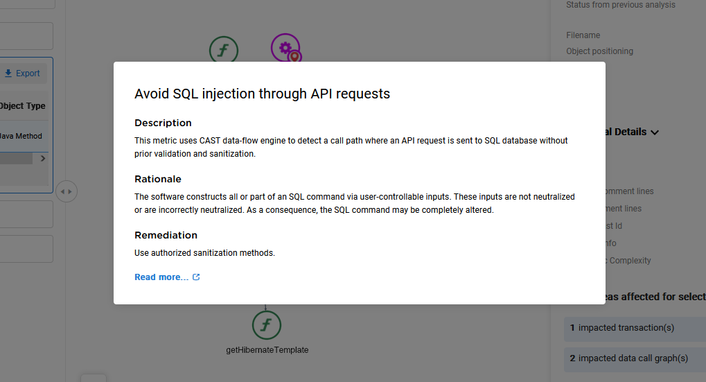 Each rule is accompanied by documentation outlining its impact and suggested remediation strategies. CAST Imaging Express helps users: