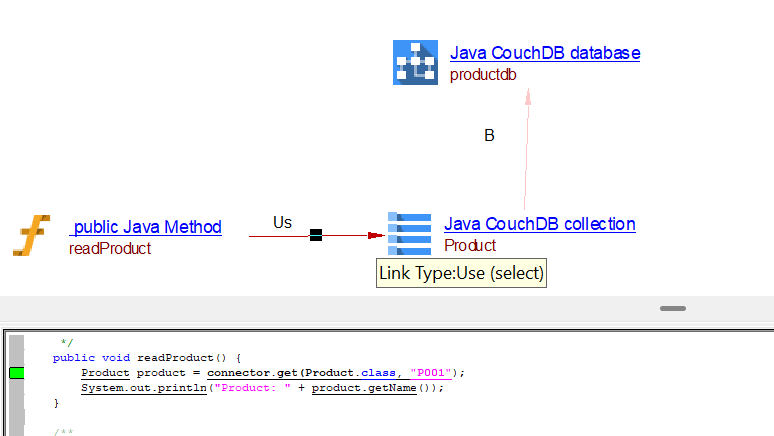 | useLink | Between the caller Java Method objects (constructors also) and Java CouchDB Collection Object | batch |