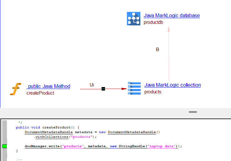 | useUpdateLink | Between the caller Java Method objects (constructors also) and Java MarkLogic Collection Object | writeMetadata |