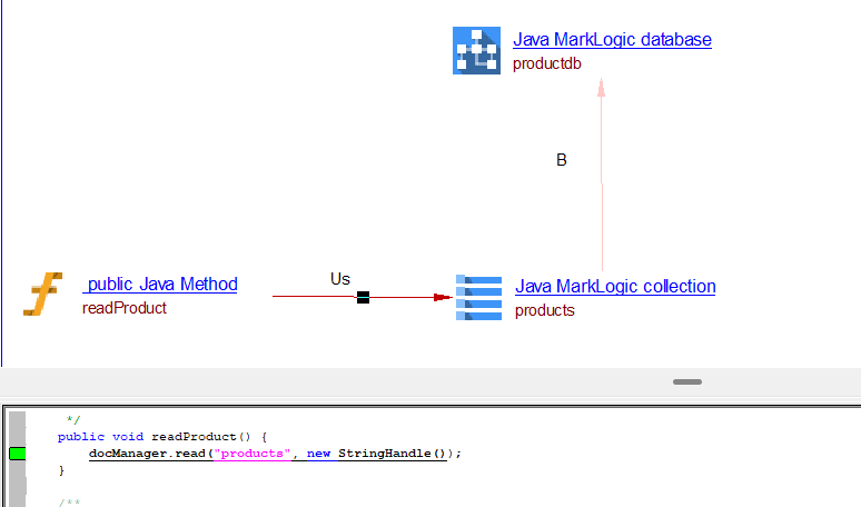 | useSelectLink | Between the caller Java Method objects (constructors also) and Java MarkLogic Collection Object | read search |
