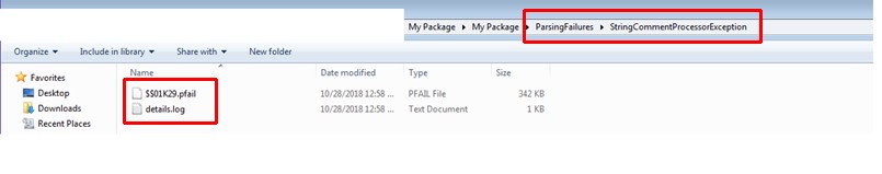 “ParsingFailures” folder at the package level and the file extension