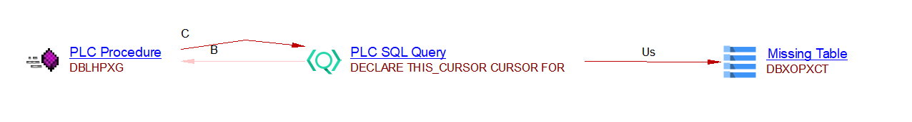 PLC Missing Table | A table or a view selected/updated/deleted/inserted in a PLC Query object missing from a DDL file. |