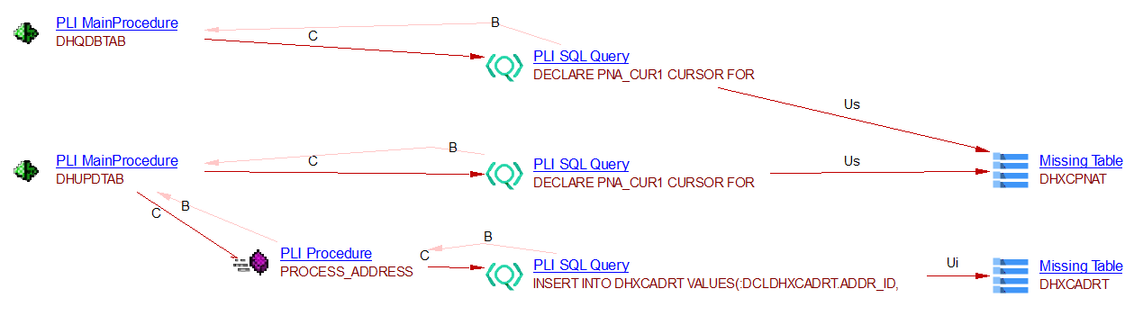 PLI Missing Procedure | A procedure or a function called in a PLI Query missing from a DDL file. |