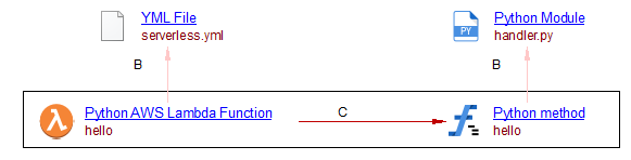 The AWS Lambda functions declared in deployment framework configuration files are analyzed by a different extensions (com.castsoftware.cloudconfig). The Python analyzer will be responsible, however, of creating the link between Lambda Function objects having the runtime property value consistent with a python runtime (python3.5, …) and the corresponding handler (a Python method object) during the application-level analysis step. It is highly recommended to add the com.castsoftware.cloudconfig extension so that proper migration of AWS objects takes place upon upgrading com.castsoftware.python extension from versions < 1.4.0-beta7.