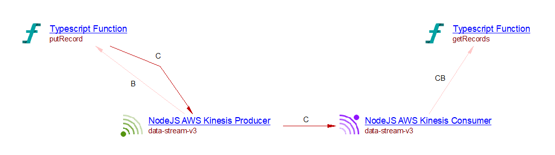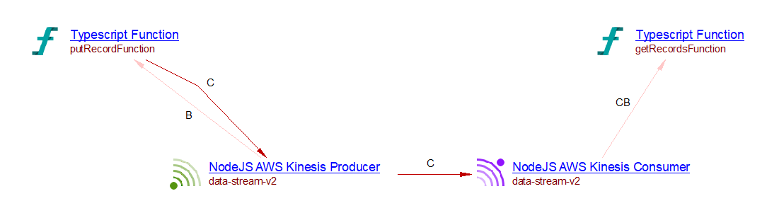 The Web Services Linker will create a callLink between the Kinesis Producer and Kinesis Consumer which have the same stream name.